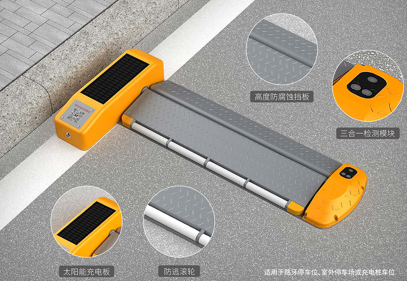 ​​适用于路牙停车位、室外停车场或充电桩车位。
