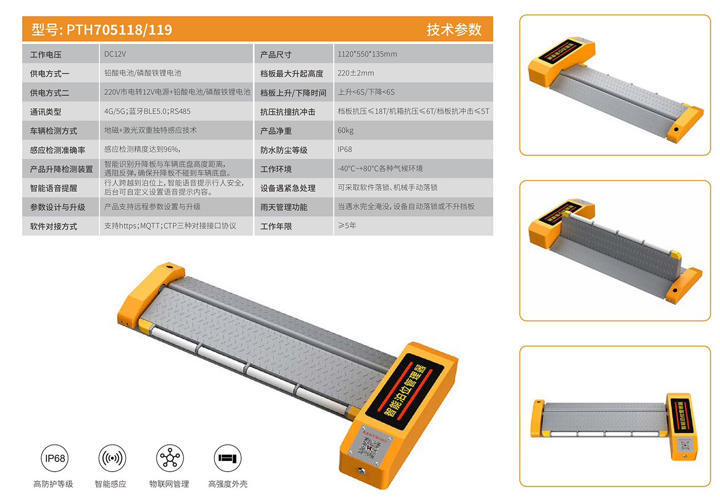 PTH-705118智能平板车位锁(太阳能款)